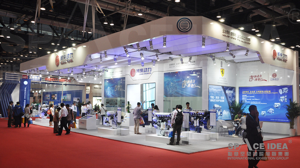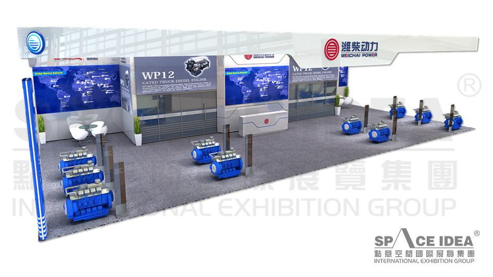 展廳設計要求:針對本次展會20M*10M的展位面積,沿用濰柴動力一貫的設計風格,達到視覺延續性,籍此以提高觀眾的認知程度; 展廳設計主題:“省油動力濰柴行” 展廳設計說明: 1、采用濰柴一貫的風格, 2、通過燈光效果凸顯產品 3、LED屏介紹產品,加深參展者印象