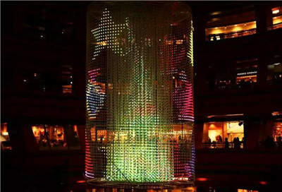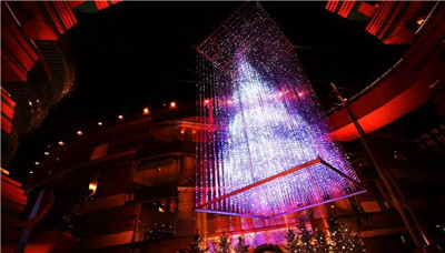 Teamlab的大名享譽全球。這件懸掛于K11露天廣場、高達7米的作品《teamLabCrystalTree》,采用teamLab獨創(chuàng)、嶄新的互動視覺形體塑造(InteractiveVisualSculpting)技術(shù)。觀眾只需利用智能手機或場內(nèi)的平板電腦連接到「K11-teamLabCrystalTree」wifi無線網(wǎng)絡(luò),即可自動進入指定頁面,通過創(chuàng)新的互動方式選擇以不同裝飾遙距布置《teamLabCrystalTree》。